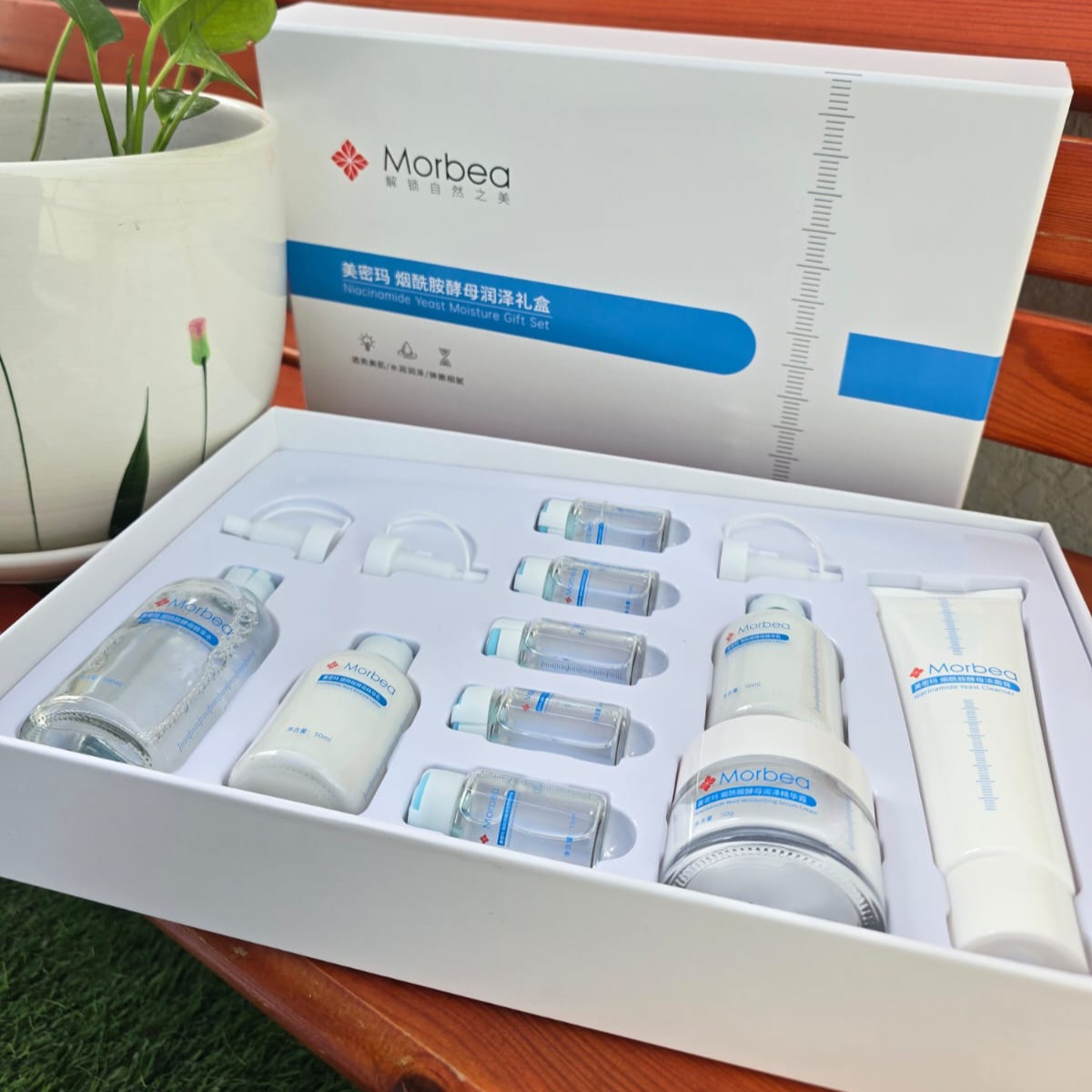 مجموعة النياسيناميد من سلسلة موربيا للعناية بالبشرة تعمل على توحيد لون البشرة وإزالة البقع الداكنة والعلامات الداكنة وتقليل الاحمرار وتقوية حاجز البشرة. مكون مستخلص طبيعي يرطب بشرتك بعمق ويجعلها تتوهج بشكل صحي، ويعيد بشرة متساوية وشفافة و تفتيح البشرة ويكافح علامات التجاعيد ويمكن استعماله لكل انواع البشرات.